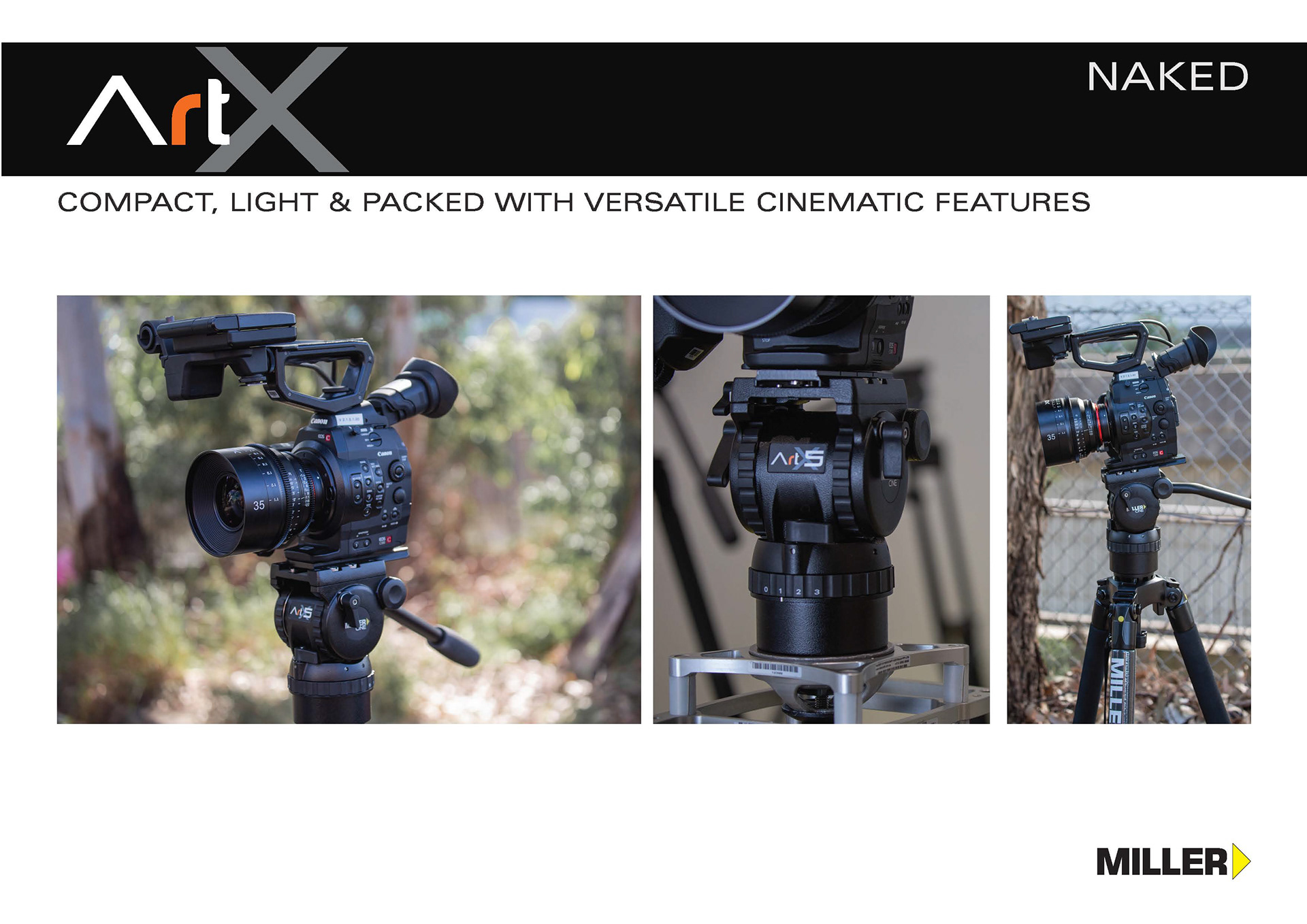 For this release where I lead the visual design for marketing the new product, it was different by the fact that it wasn't following any of the former fluid head releases by Miller. ArtX was a new name and brand adding entering into the company catalogue.